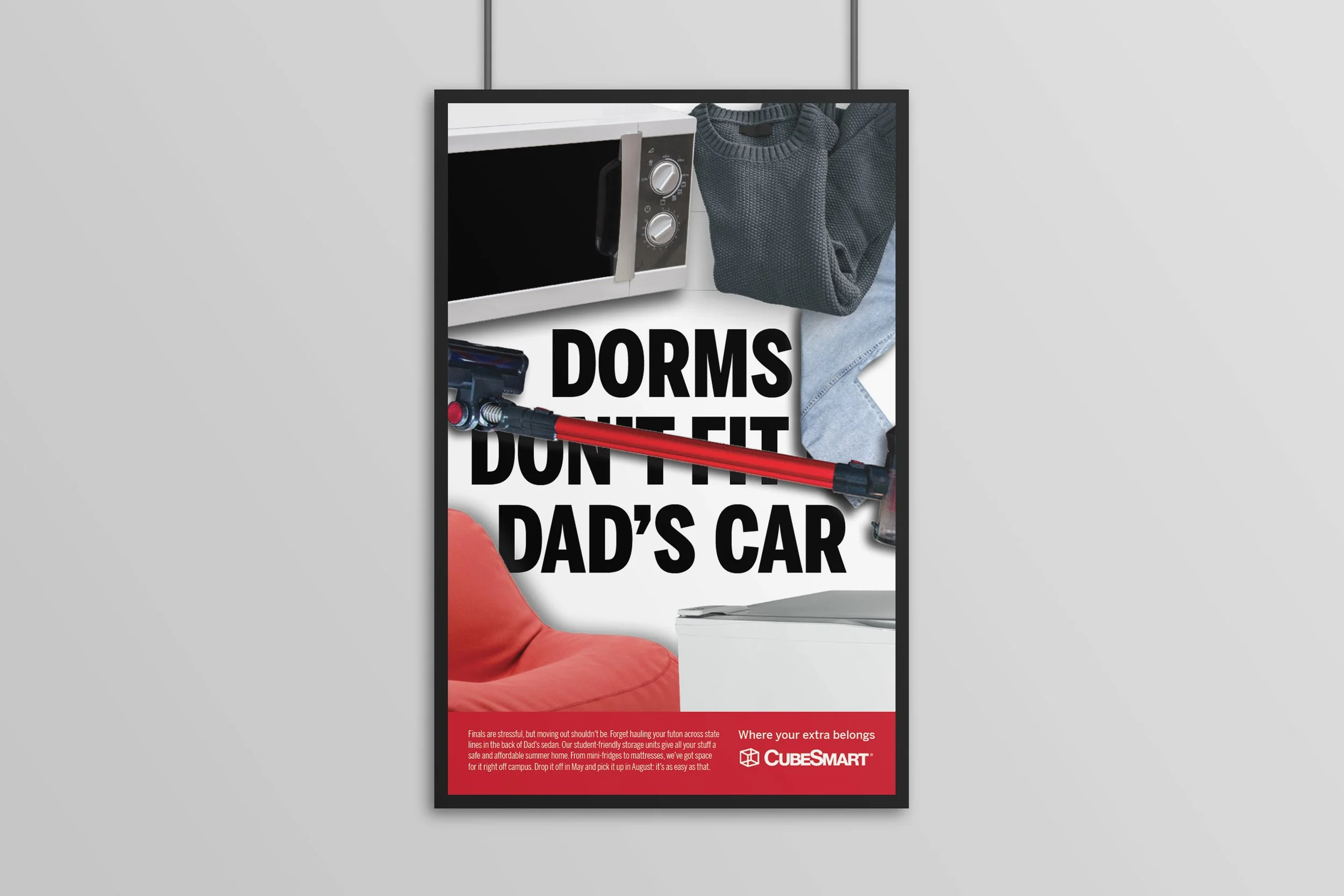 A busy visual, placed in a busy area for busy audiences who want some space, which CubeSmart provides.